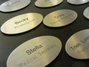 Badges in FramesPrinted Plastic Laminate badge iscut and reshaped to fit into these attractive frames.
