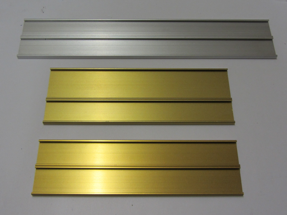 Anodised aluminium door name plate holders in a wide range of sizes & finishes in single band, in multiple band sizes, twin-